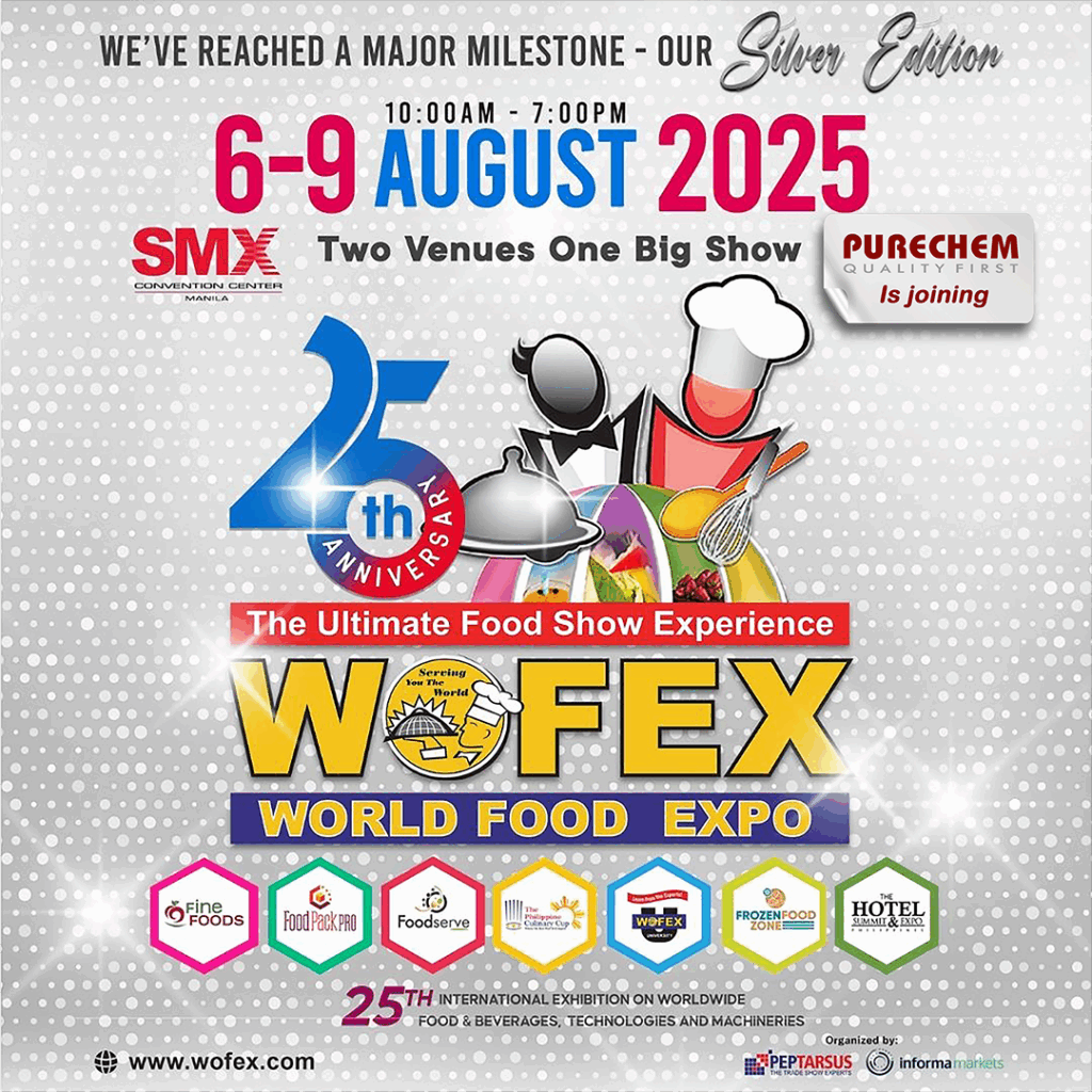 08 Jul Events WOFEX 2025 July 8, 2025 Posted by Michelle Villanueva Join us at WOFEX 2025! 📅 August 6–9, 2025 | 🕙 10 AM–7 PM 📍 SMX Convention Center, Manila – Booth #1044Purechem, one of the Philip...Continue reading